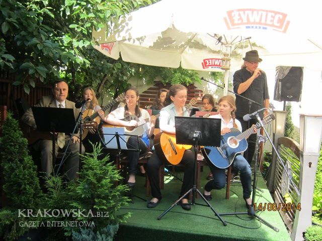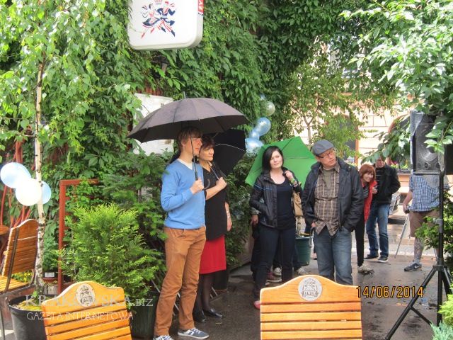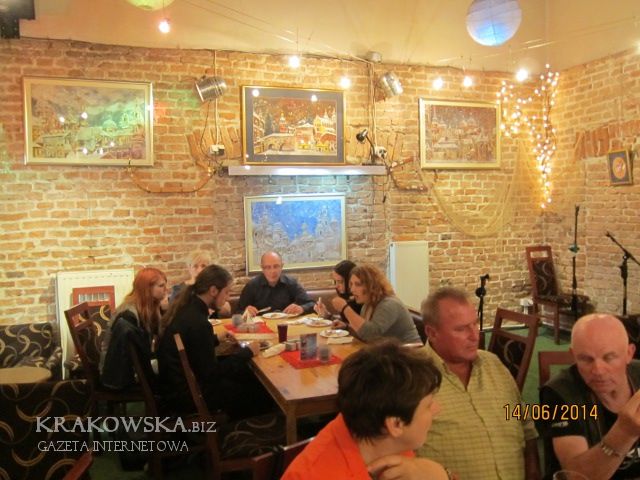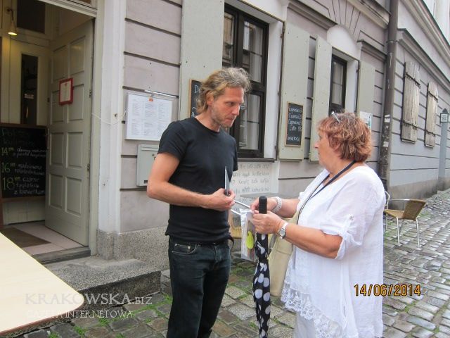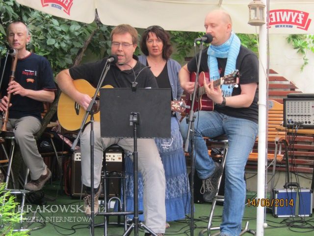 Tu też przez cały dzień odbywało się wiele imprez ,a więc występy wokalistek czy gitarzystek ze Staromiejskiego Centrum Kultury ,a także koncert ?Grupy bez bisów?, Lidii Jazgar z zespołem, czy Włodka Mazonia ,który czuwał nad całością. Temu wszystkiemu towarzyszyło otwarcie dwóch bardzo ciekawych wystaw artystycznych: znanej krakowskiej malarski Łucji Kłańskiej -Kanarek oraz debiutującego bocheńskiego artysty fotografika Bartosza Bieniasa. Sadzę, że sztukę Łucji Kłańskiej-Kanarek znają Państwo doskonale, chociażby poprzez opisywane przeze mnie, liczne jej wernisaże. Tym razem obrazy artystki z cyklu ?Z mojego Krakowa? zagościły w Pubie Wręga. Tu można zobaczyć jej piękny Kraków, pełen zachwytów, opisywany przez artystkę językiem poetyckiej metafory. Kiedyś pisałam, że z tych obrazów wyłania się duch Chagalla i coś w tym chyba jest, bo proszę sobie wyobrazić ,że Paulina jedna z wokalistek CSK, fantastycznie zaśpiewała właśnie piosenkę o Chagallu. Nic dodać nic ująć. A wracając do debiutującego Bartosza Bieniasa jego ?Ulica gumą pisana? to bardzo ciekawe fotografie ulicy Józefa wykonane unikalną techniką gumy chromianowej ,pochodzącą z połowy XIX wieku, która bazuje na garbujących właściwościach chromianów. Tematem przewodnim jego wystawy są podwórka i wnętrza kamienic przy ulicy Józefa. Prace te odzwierciedlają atmosferę z jaką spotkał się artysta fotografując tę ulicę. Widać tu klimat pewnej tajemniczości i namacalnych śladów poprzednich lat, które wywarły na nim wielkie wrażenie. Niektóre z prac ocierają się nawet o przestrzenie grafiki, dlatego też są bardziej fotografią sensualną. To powoduje iż Bartosz Bienias w sposób twórczy, właściwy tylko dla niego, przekazuje nam tajemniczą rzeczywistość ulicy Józefa. Tak więc zachęcam Państwa do wybrania się w nadchodzącym tygodniu na ulicę Józefa 17 do Pubu Wręga ,aby móc na własne oczy zobaczyć te niezmiernie ciekawe obie wystawy, gdyż niestety będzie to tylko możliwe do 22 czerwca ,a więc do przyszłej niedzieli.