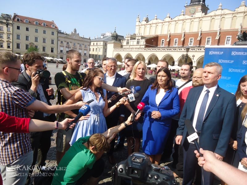 Przy dźwiękach hejnału z wieży mariackiej i pod bacznym wzrokiem wieszcza Adama krakowska posłanka Kukiz 15 Agnieszka Ścigaj zaprezentowała kandydatkę swojego jedynego rzeczywiście obywatelskiego ugrupowania na urząd prezydenta miasta Krakowa. Jest to, doskonale znana w mieście, a szczególnie w swoim środowisku nauczycielskim, Jolanta Gajęcka. Tak –na gorąco patrząc-wydaje mi się, że jej osoba mocno naruszy stan posiadania Jacka Majchrowskiego, bowiem to Jolanta Gajęcka, jako dyrektor szkoły, była największym przeciwnikiem wdrażanej w mieście reformy oświaty przeprowadzanej z jednej strony przez UMK i Małopolskie Kuratorium Oświaty.