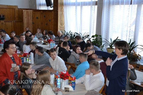 Pan Prezes Franciszek Kaletka powitał wszystkich składając życzenia: Wesołych Świąt i Szczęśliwego Nowego Roku. Łamanie się opłatkiem i składanie sobie wzajemnie życzeń to tradycja gdzie wszystkie animozje życia odchodzą w niebyt. Uczniowie i wychowawcy klas śpiewali wylosowane kolędy przez Starszego Cechu. Były okolicznościowe przedstawienia i występy. Uroczystość tradycyjnie zakończył okolicznościowy poczęstunek.