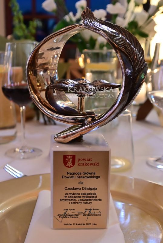 W środę 22 kwietnia 2026 roku w Oranżerii Dworu w Tomaszowicach miała miejsce już 13. Gala Nagród Starosty i Powiatu Krakowskiego. Z rekomendacji Krakowskiej Gazety Internetowej (www.krakowska.biz) Nagrodę Główną Powiatu Krakowskiego „za wybitne osiągnięcia w dziedzinie twórczości artystycznej, upowszechniania i ochrony kultury” otrzymał prof. Czesław Dźwigaj od 40 lat tworzący i mieszkający w Rząsce przy ulicy Krakowskiej.