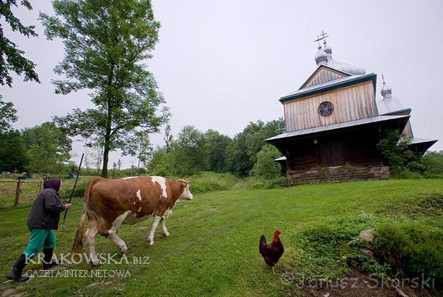 Święto Jordanu - niewielka grupka prawosławnych idzie w procesji nad San. Jest ich mniej niż zwykle. Zawsze wszyscy zbierali się tutaj, lecz gdy odżyły cerkwie ? każdy chce u siebie świętować Chrzest Pański. Wszyscy się cieszą ? będzie świeża święta woda i musi jej wystarczyć na cały kolejny rok?Jedziemy?Tutaj została jedynie bryła cerkwi. Ogrodzona, ale niszczeje, w niektórych okienkach brak szyb. Zarośnięty cmentarzyk - trawę koszą dwa razy w roku miejscowi ludzie. Rozmawiamy z sołtysem - zobaczył obcych we wsi i przyszedł do nas? Młody, około 35 letni mężczyzna mówi ??a jak mam nie dbać? staram się ale brak funduszy? a czy to ważne kto tu leży? Tu chowano prawosławnych, greko- i rzymo-katolików to nasi przodkowie? no i jak tu nie dbać?? Pamiętają, dbają jak mogą, opowiadają swoim dzieciom żeby nie zapomniały. Jedziemy dalej, prosimy o klucze do cerkwi w ruinie ale zamkniętej na kłódkę. Jest gospodyni, uśmiecha się do nas szeroko: ??o goście przyjechali! Dam wam dam? tylko ci ostatni z Krakowa to Tabernakulum ukradli?? Robi się nam głupio? Częstuje nas prawdziwym, świeżym sokiem malinowym opowiadając o historii miejsca w którym jesteśmy? Cudowni ludzie ? z radością tam wrócimy?