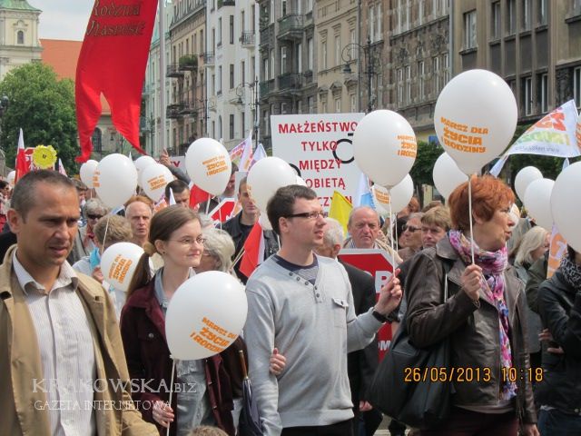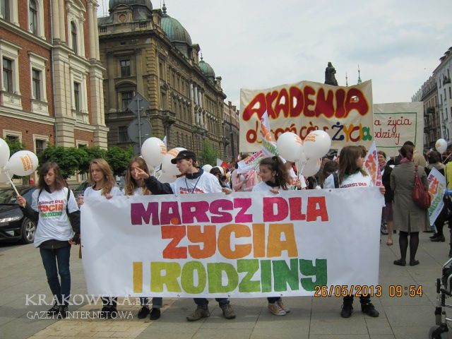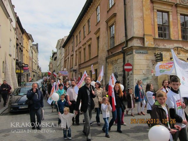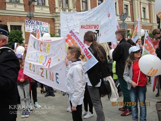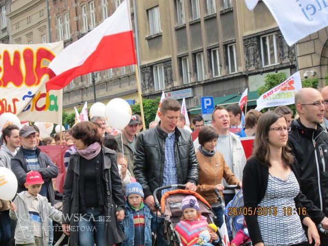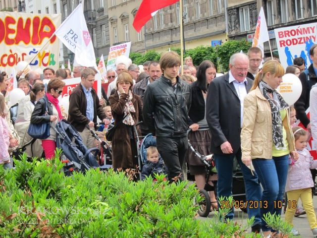 Wpadały w oko i ucho hasła skandowane przez  maszerujących i widoczne na transparentach.  ?Chłopak i dziewczyna to polska rodzina? ?Dwaj faceci nie mogą mieć dzieci? Organizatorzy informowali, że takich marszy jest dzisiaj w Polsce ponad sto. Uważam że ?rozpychanie się? się mniejszości seksualnych w życiu społecznym, w tzw. ?postępowych?  mediach , znacznie przekracza już poziom tolerancji społecznej wobec tych środowisk. Udział w dzisiejszym marszu kilkuset młodych rodzin  z licznym dziećmi  powinno byś skuteczna próbą zatrzymania tego - dla mnie -  bardzo niepokojącego zjawiska.